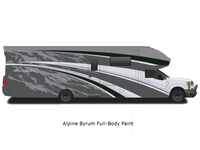 The Accolade XT from Entegra Coach is a Super C diesel motorhome like no other. With a tough exterior appearance and a comfortable interior, you will enjoy hours of fun in this motorhome. The Ford F600 4X4 chassis or Ford F550 4x4 chassis (depending on which model you choose) is ready to go anywhere, and the all-terrain tires with HiSpec matte black aluminum rims enhance the appearance.