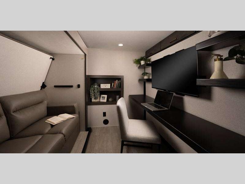 - Flip-up tabletop storage next to tri-fold sofa (select models)