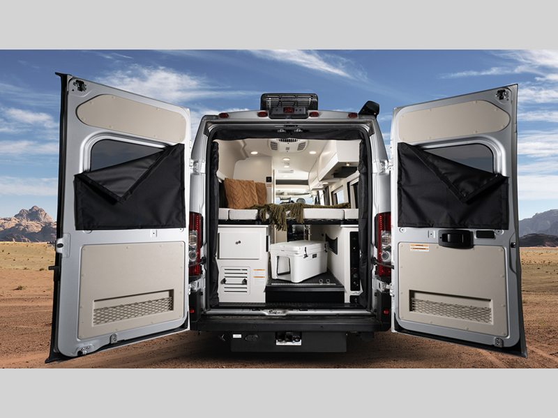 Sleeps 2 Length 20 ft 11 in Ext Width 6 ft 11 in Ext Height 9 ft 3 in Int Height 6 ft 2 in Interior Color Caricou Exterior Color Granite, Silver Hitch Weight 3500 lbs GVWR 9350 lbs Fresh Water Capacity 24 gals Grey Water Capacity 13 gals Black Water Capacity 12 gals Tire Size LT225/75R16E Furnace BTU 20000 btu Generator 2,800-watt Onan Fuel Type Gasoline Engine 3.6L V6 24V VVT Chassis Ram ProMaster 3500 Van Horsepower 276 hp Fuel Capacity 24 gals Wheelbase 159 in Available Beds Two Twin with King Conversion Torque 250 ft-lb Refrigerator Type DC Refrigerator Size 3.1 cu ft Convection Cooking Yes Shower Size 25" x 43" Number of Awnings 1 Water Heater Type Truma Combi Eco Plus AC BTU 13500 btu Awning Info 13' Thule Armless w/LED Light Strip Gross Combined Weight 12000 lbs Shower Type Wet/Bath Shower Electrical Service 30 amp Similar Floorplans